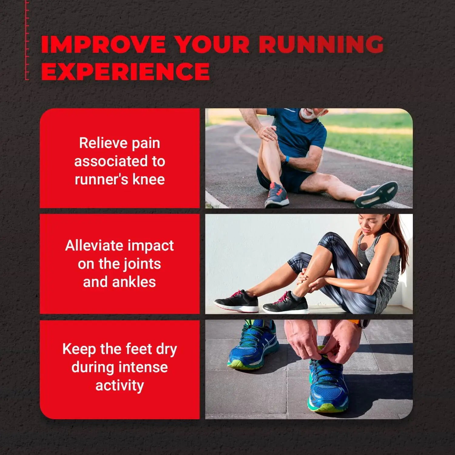 These insoles assist athletes and runners to attain their best potential through the combination of Sweat Control Tech, EnerBoost Tech, and Joint Protect Tech. These running shoe insoles are ideal for alleviating knee pain and for any athletes seeking enhanced performance, comfort, and injury prevention.