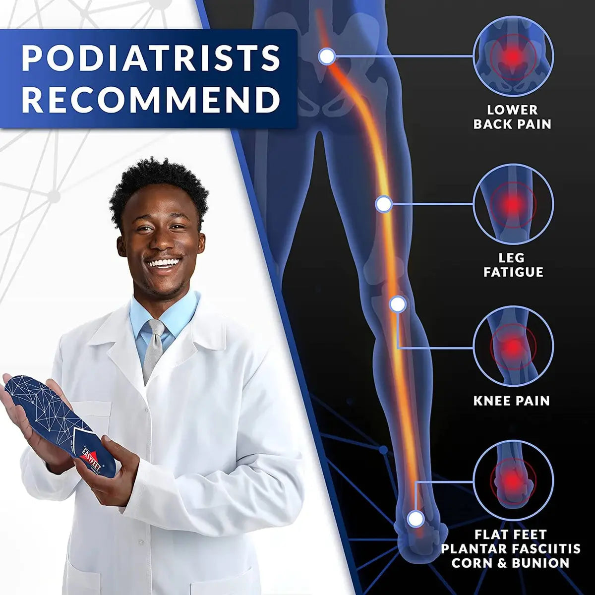 The cushioning layer of EASYFEET medium arch support insoles is improved by shock-absorbing cushioning pads. Leg weariness is decreased by these features, which also distribute the load, relieve stress in high-pressure zones, and redirect energy back to the foot and leg. For safe joints, additional heel and metatarsal padding offer shock-absorbing cushioning.